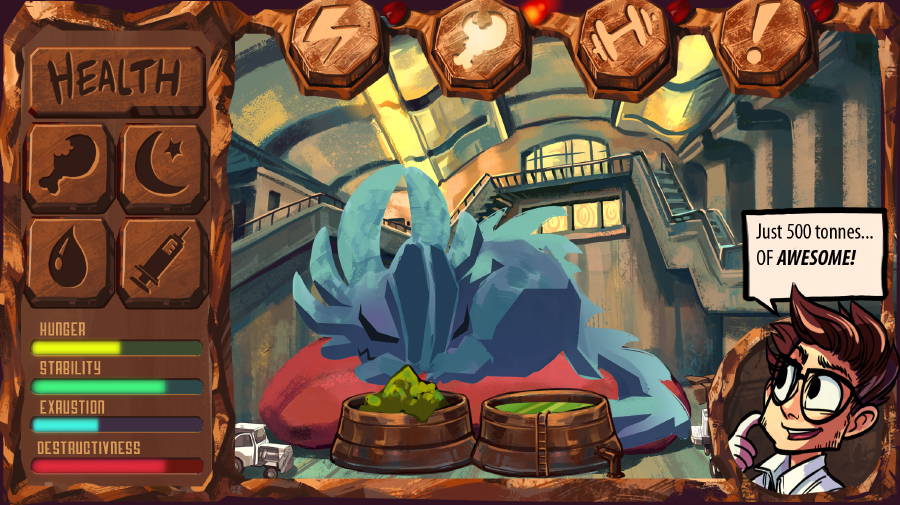 In true Evil Scientist fashion you cobble together and raise adorable gigantic baby Kaiju tamagochi style,